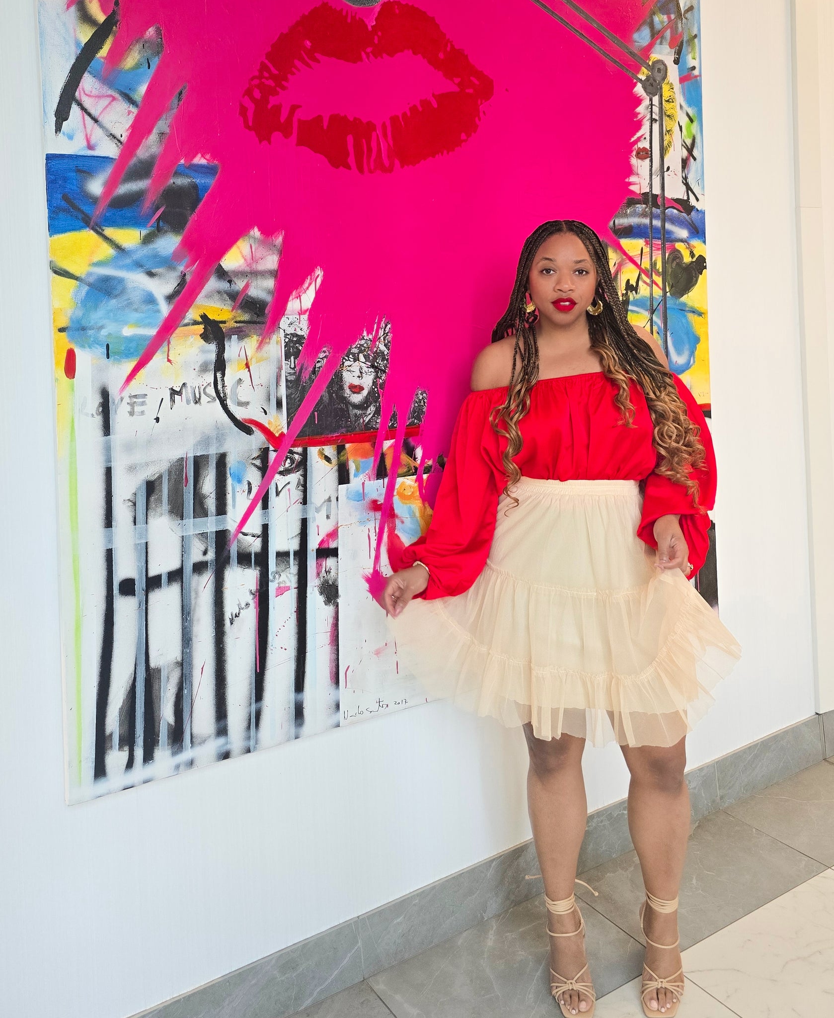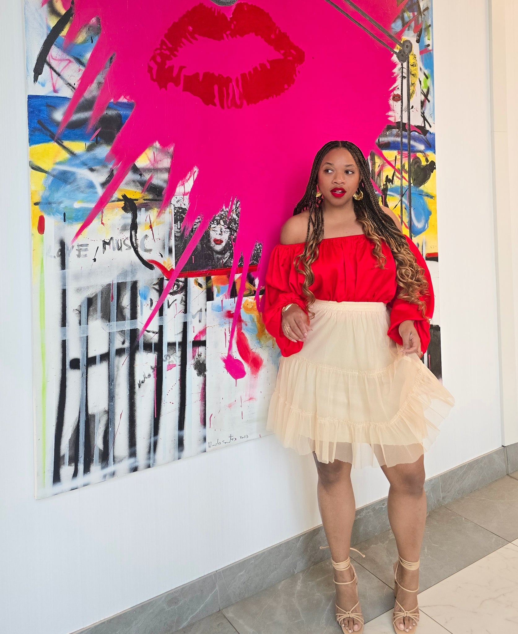 Emmerie model is 5'8, US women's size 8/10, wears size Small to show flex fit. Sample model is true size small, wears size Small